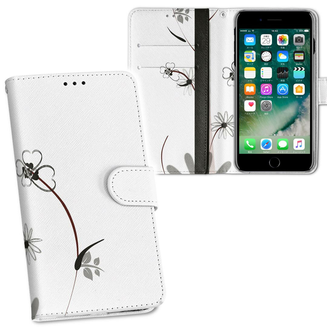 509SH シンプルスマホ3 softbank ソフトバンク 両面プリント 裏表 内側 内面 スマホ カバー レザー ケース 手帳タイプ フリップ ダイアリー 二つ折り 革 フルデザイン 001575 花 モノクロ