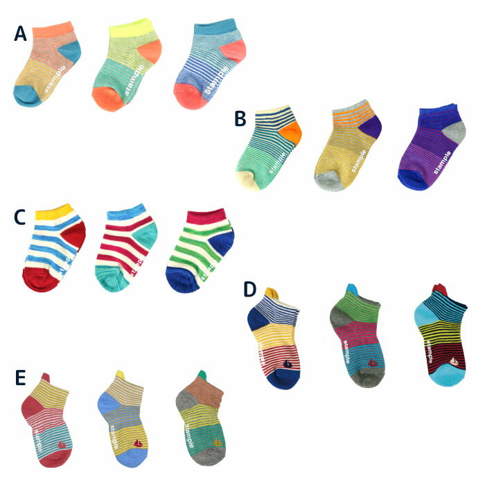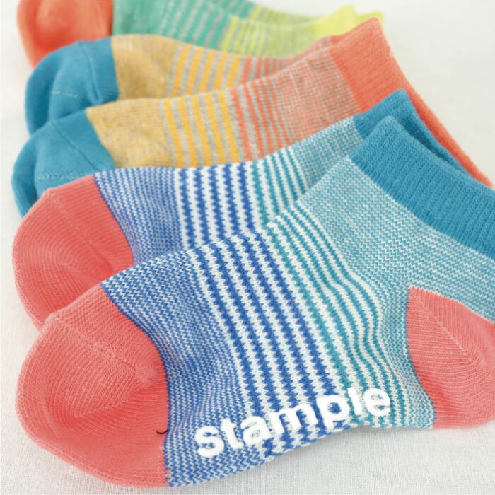 商品説明 素材 綿・ポリエステル・ポリウレタン サイズ S 13-15cm M 16-18cm L 19-21cm LL 22-24cm 生産国 中国 特徴 カラフルボーダーのアンクルソックス。